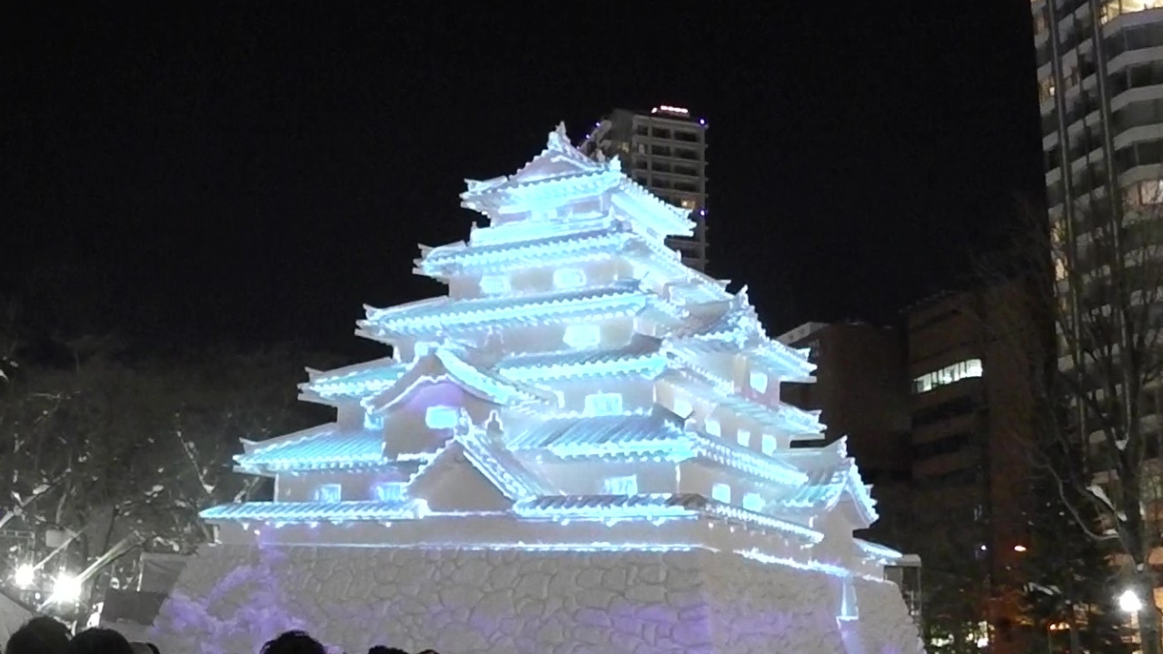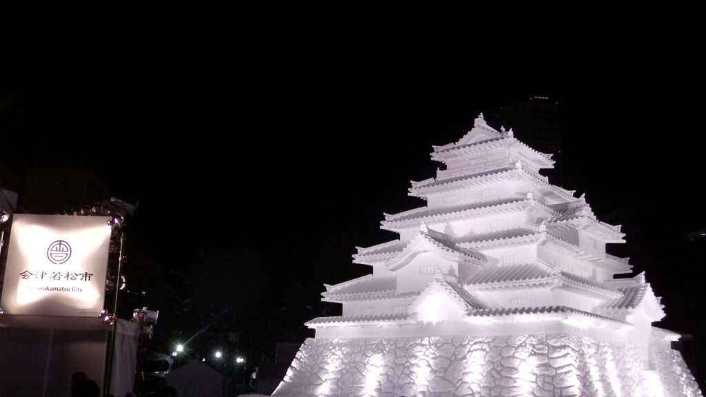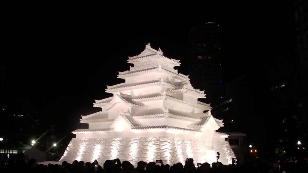 巨大な雪像とライトアップが訪れる人々を迎えてくれました。