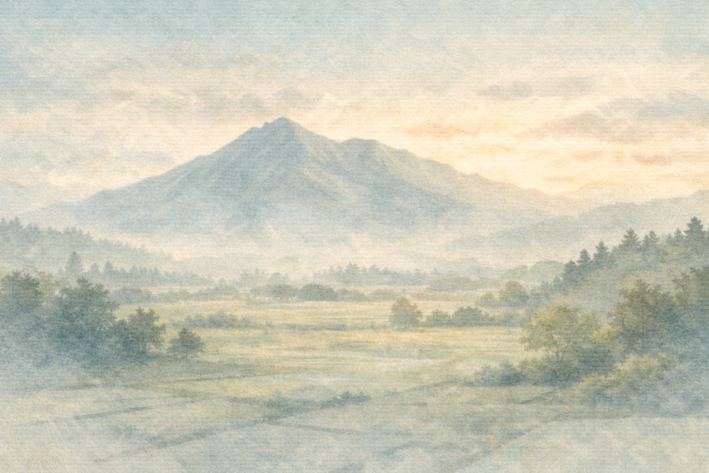 磐梯町に広がる自然と、その背後に静かに在る磐梯山、